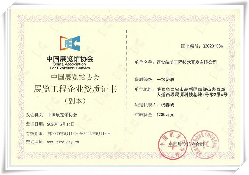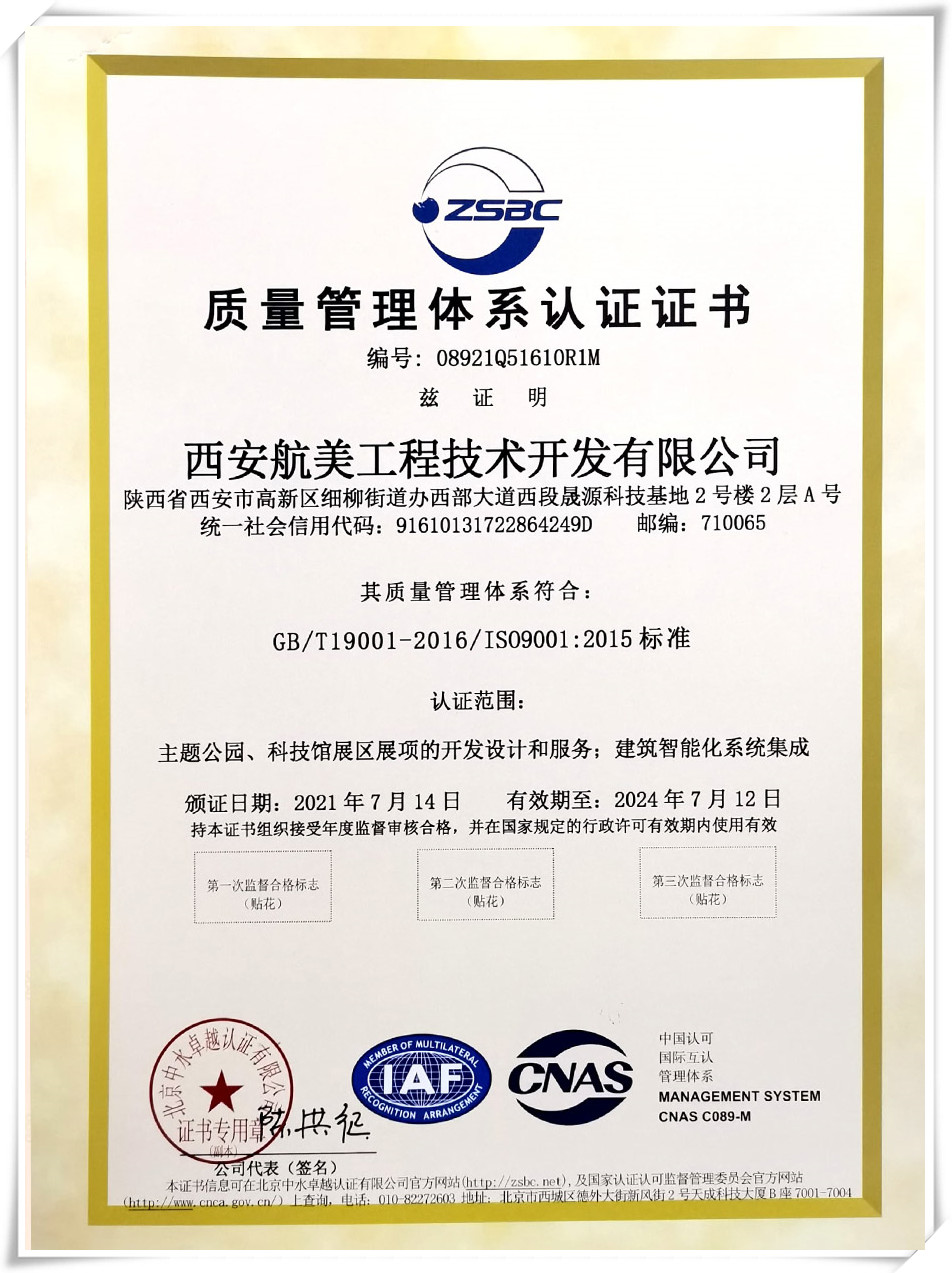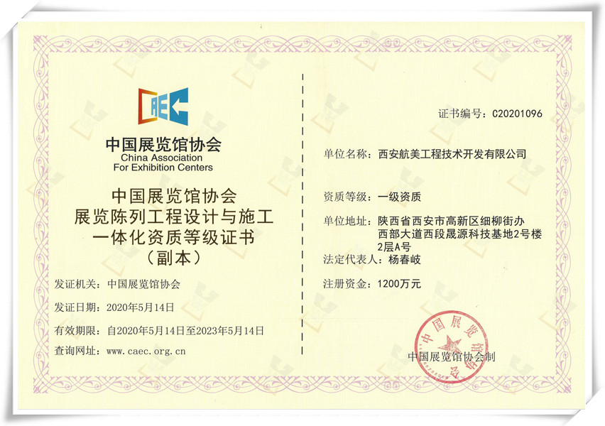 公司已通過(guò)ISO9001、ISO14001、OHSAS18000體系認(rèn)證,具有甲級(jí)設(shè)計(jì)及施工資質(zhì),是中國(guó)自然博物館學(xué)會(huì)、中國(guó)展覽館協(xié)會(huì)、中國(guó)游藝機(jī)游樂(lè)園協(xié)會(huì)、陜西安防協(xié)會(huì)、陜西省科技館教育聯(lián)盟的會(huì)員單位。公司面向客戶提供從概念設(shè)計(jì)、初步設(shè)計(jì)、深化設(shè)計(jì)、展項(xiàng)開(kāi)發(fā)制作、現(xiàn)場(chǎng)施工、安裝調(diào)試、售后服務(wù)、展教服務(wù)等各個(gè)階段的全方位服務(wù)。